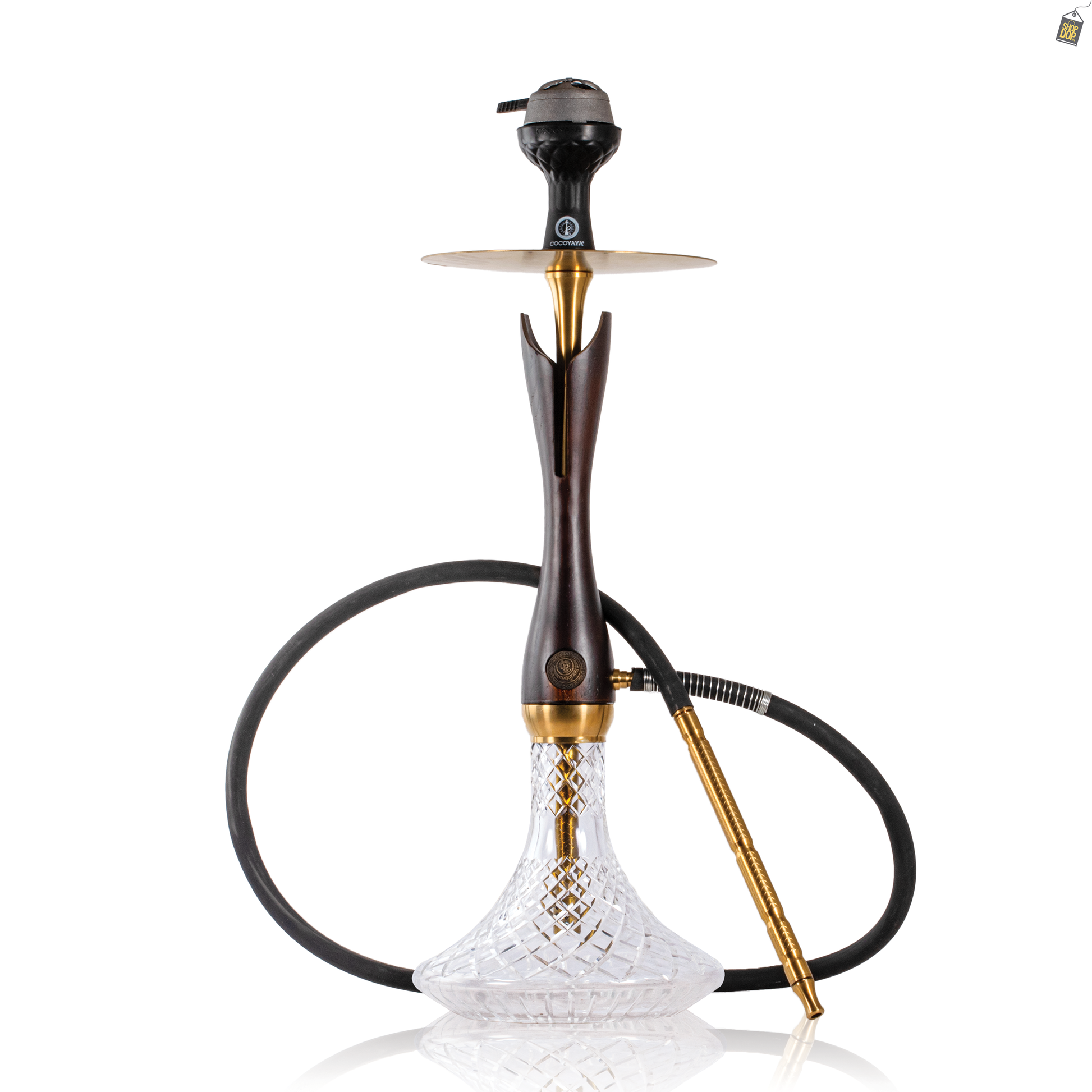 COCOYAYA Wood Pro Hookah - Golden Black Stem / Transparent Base