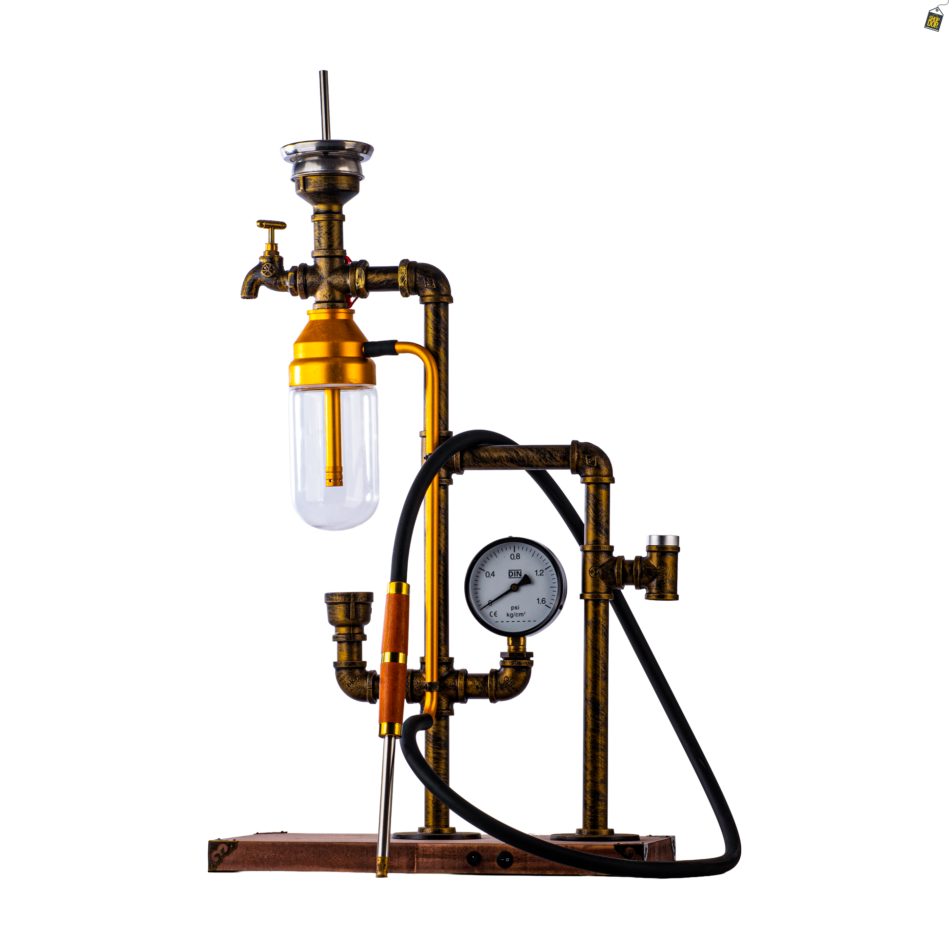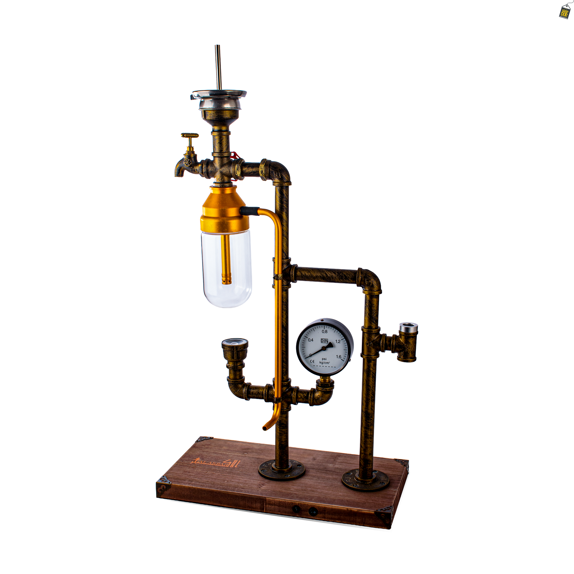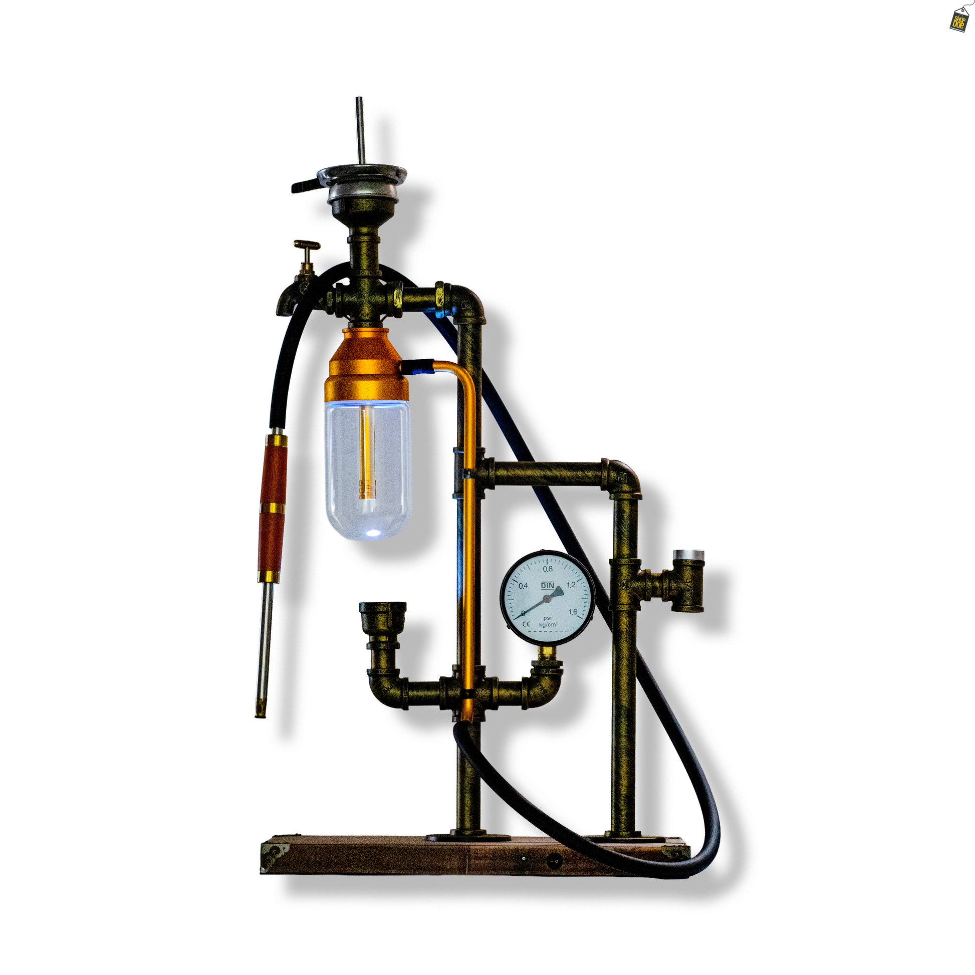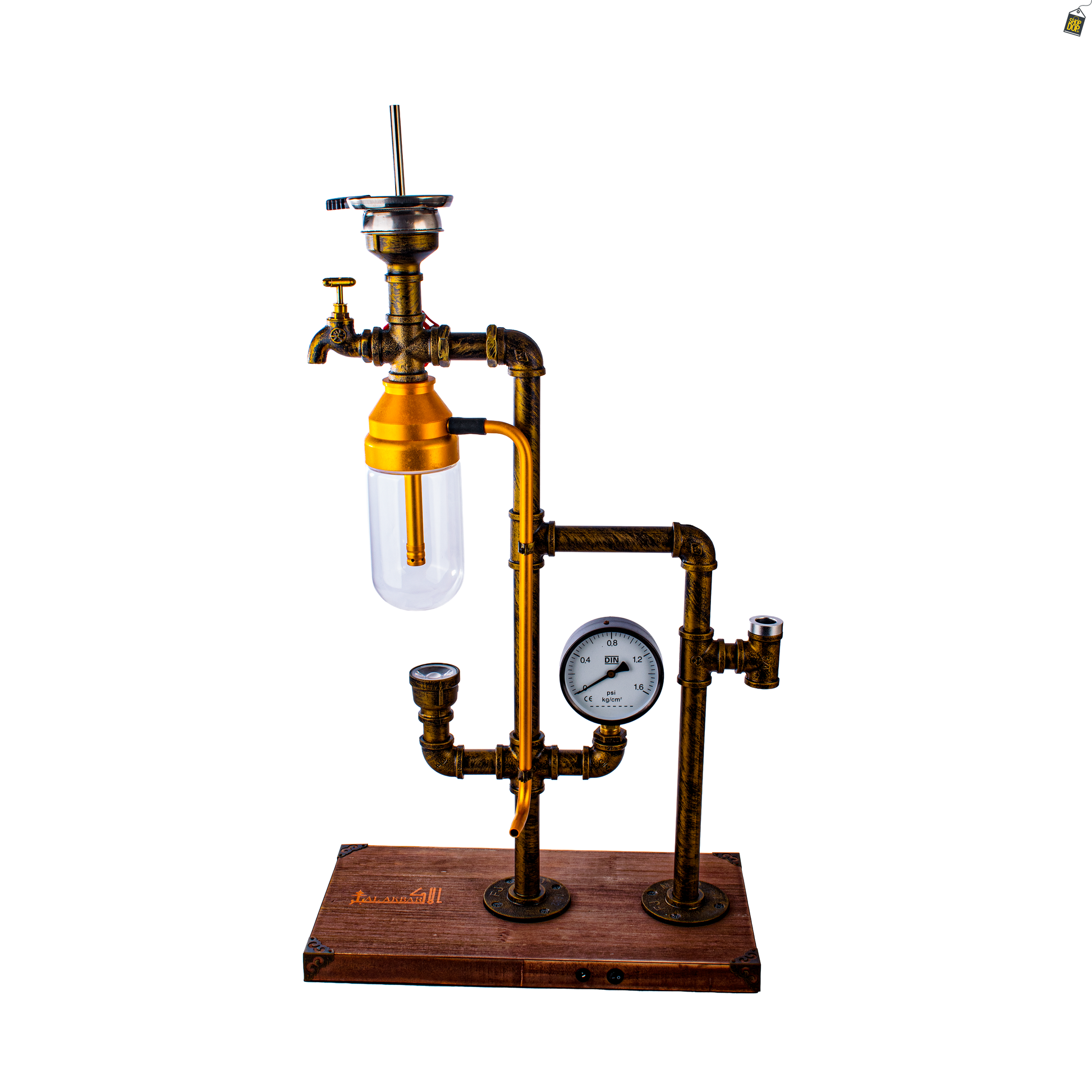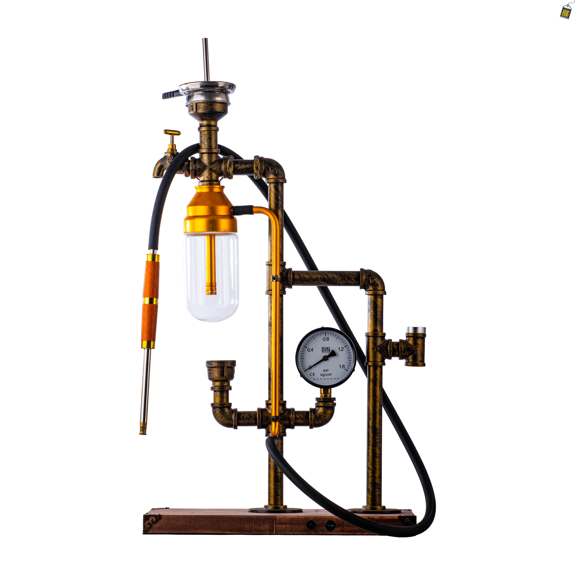 Space X1 Hookah with Wooden LED Light Stand - Golden