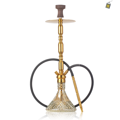 COCOYAYA King Series Brando Hookah with Bag - Golden Stem / Cut Glass Base