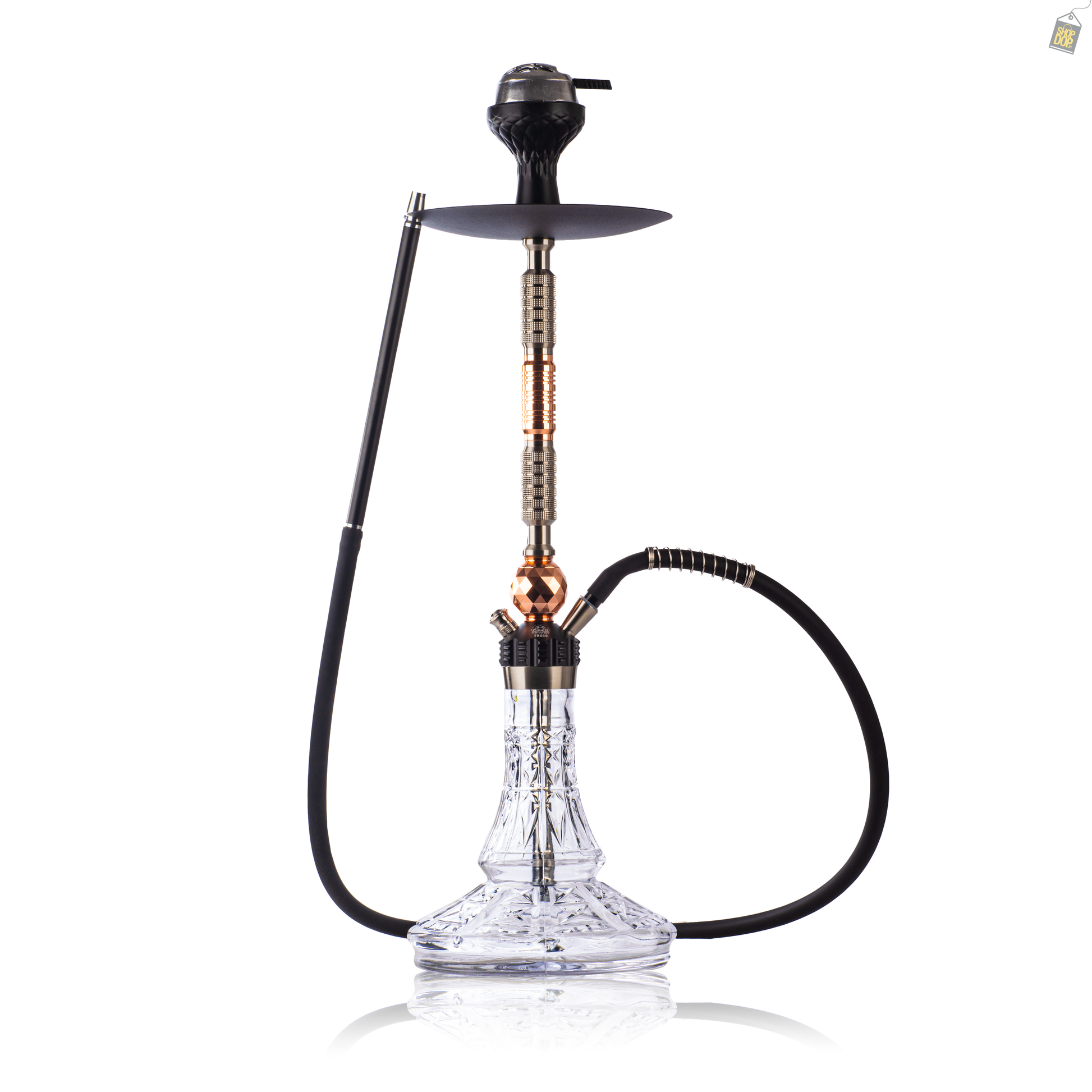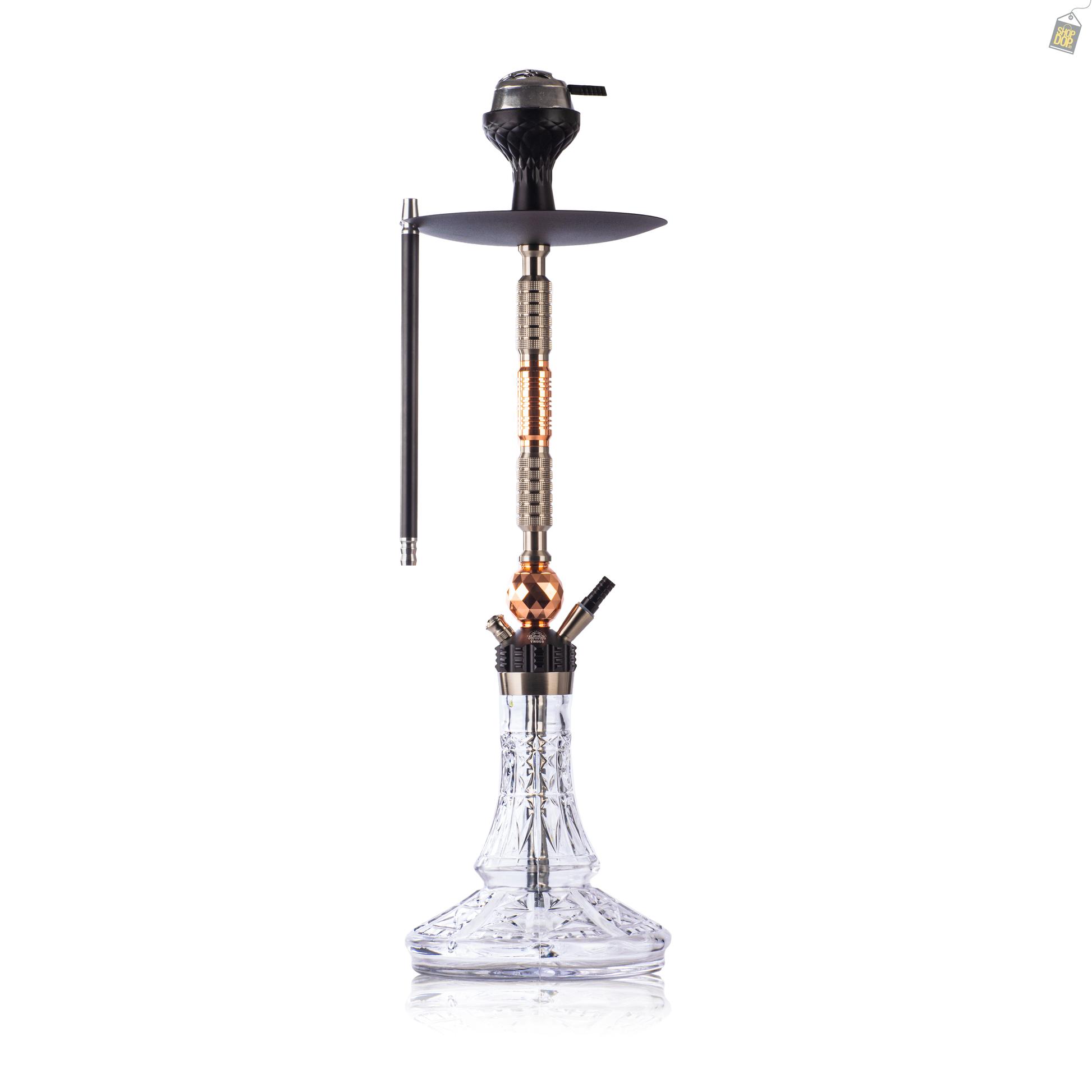 | Color | Yes | rose gold color hookah with transparent glass base |