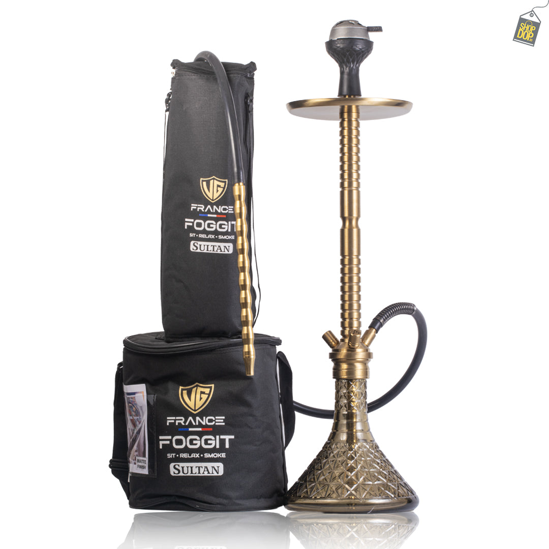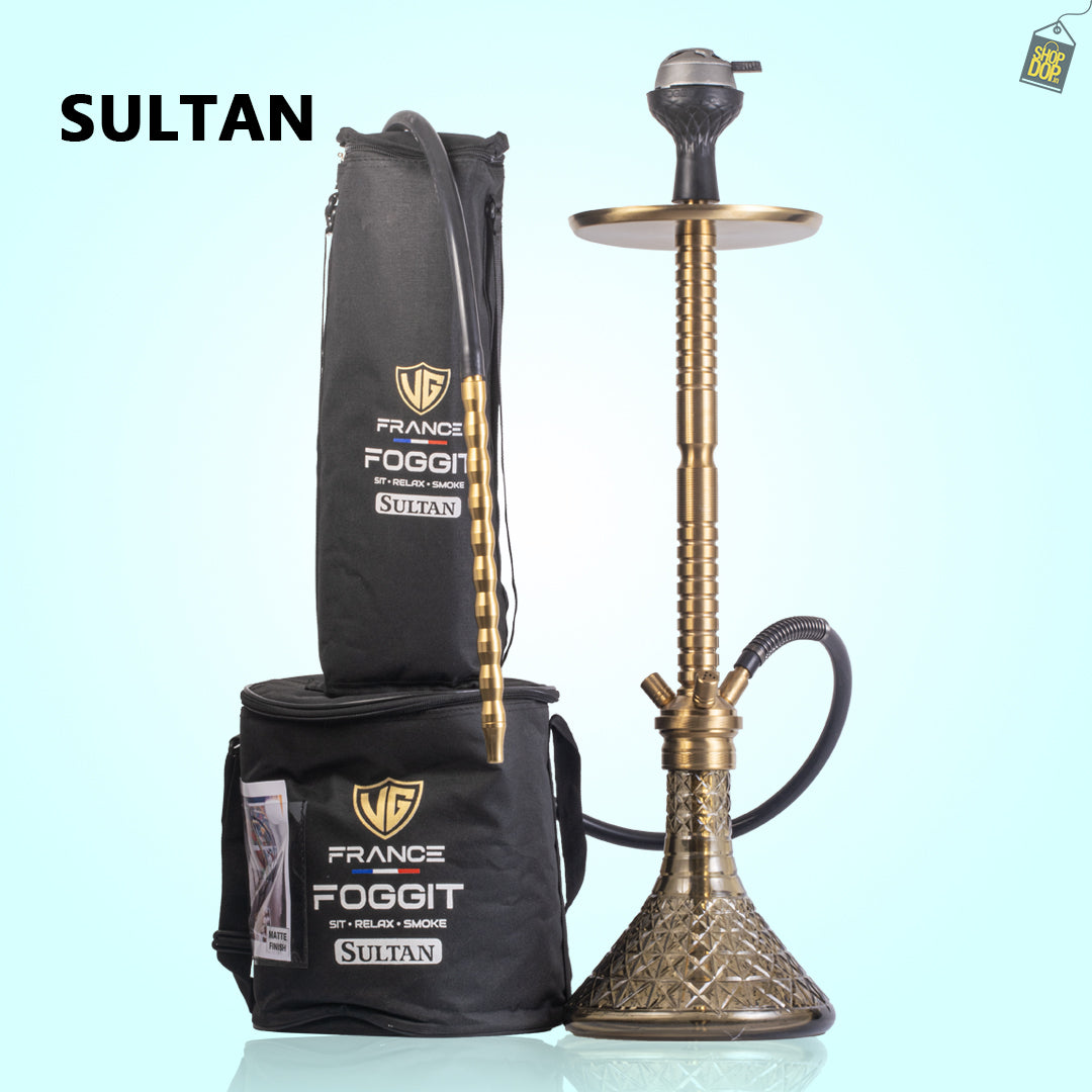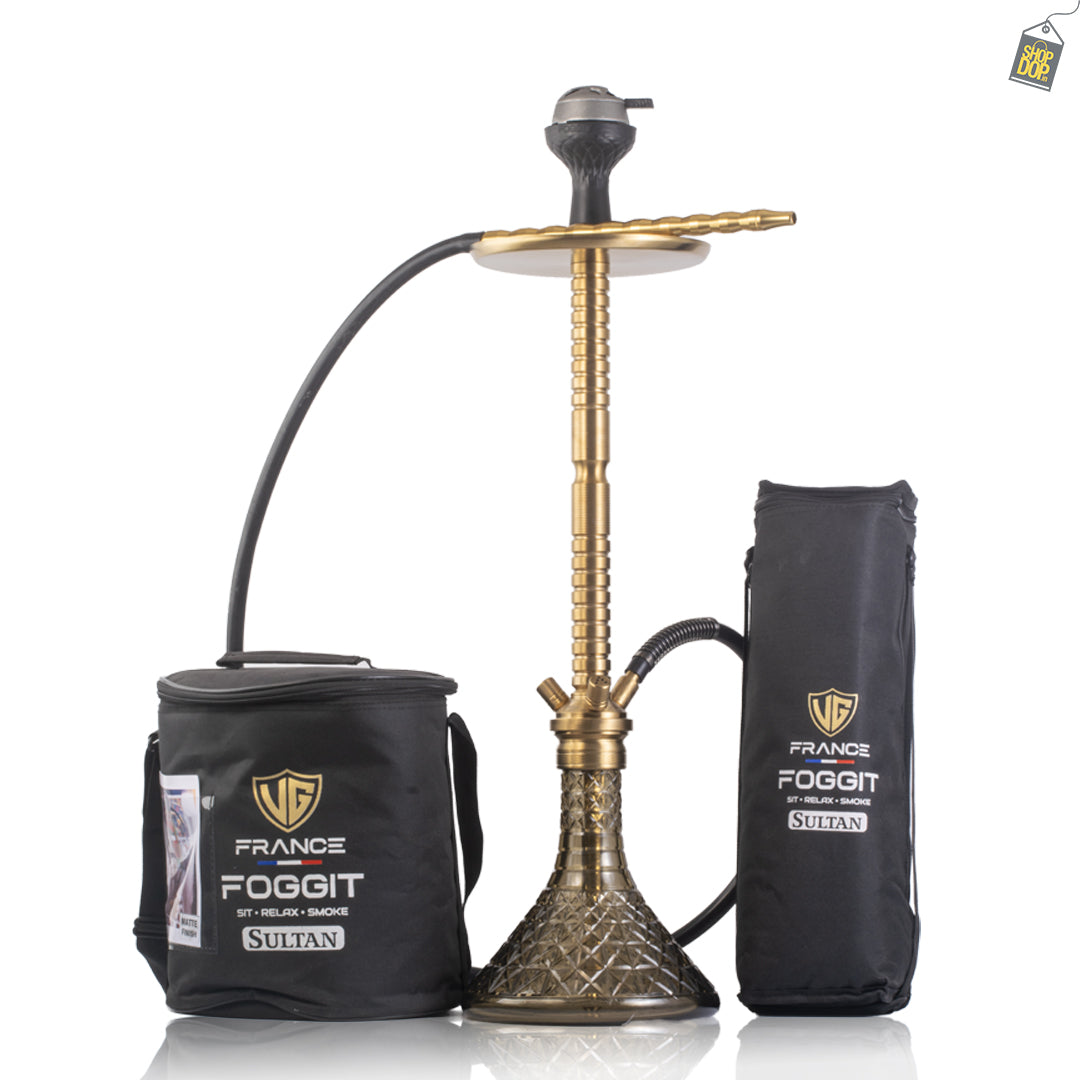 Sultan Heygan Hookah with 2 Bags - Grey Base / Gold Stem